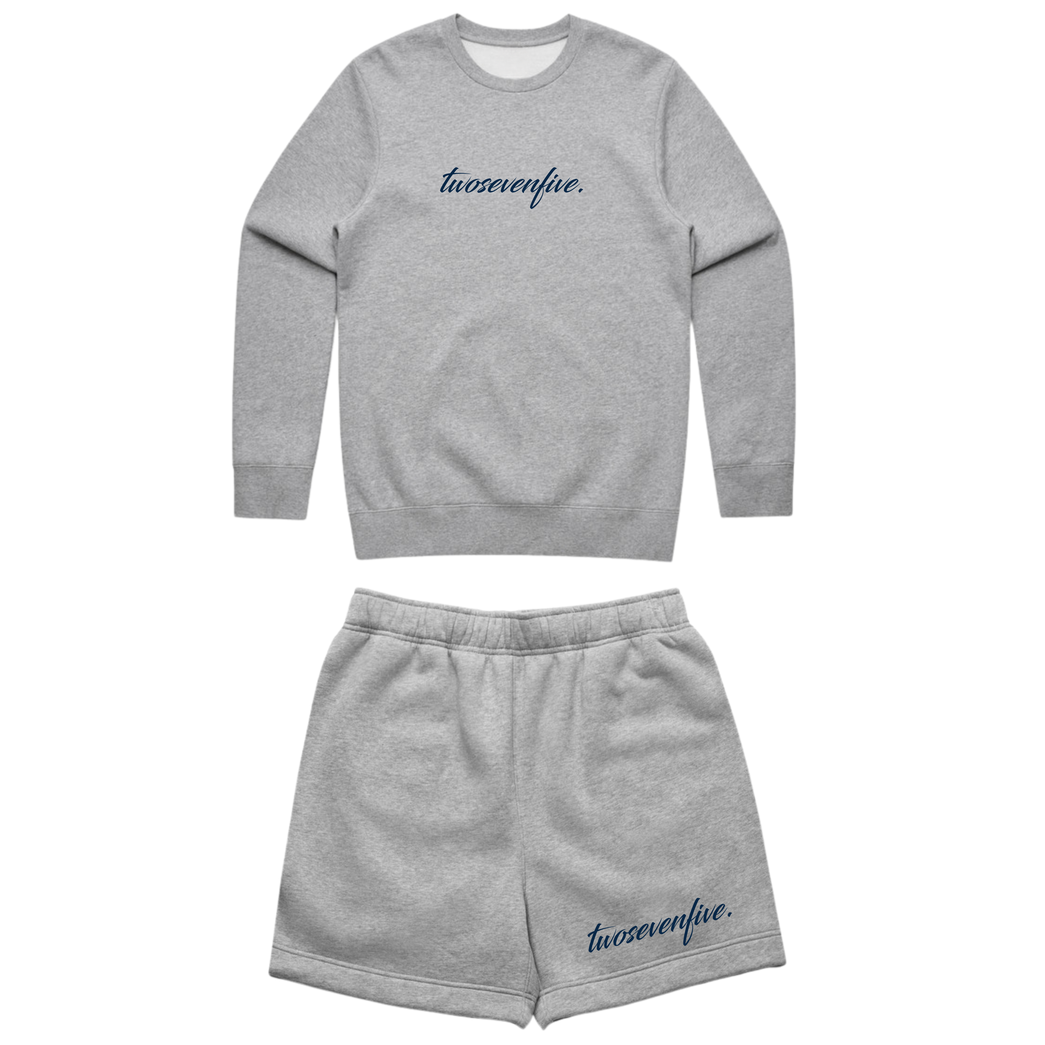 Featuring the latest twosevenfive. Embroidered Script Logo Crew Neck and Shorts Tracksuit offers a sleek and stylish look with premium comfort. Made from a blend of 80% cotton and 20% recycled polyester fleece, this mid-weight set is perfect for everyday wear. The crew neck sweatshirt features a carefully embroidered twosevenfive. script logo for a refined, elevated touch. The shorts are designed for a relaxed fit, with an elasticated waistband and tonal drawcord for a customizable fit. Ideal for casual outings or lounging, this tracksuit delivers both style and sustainability.